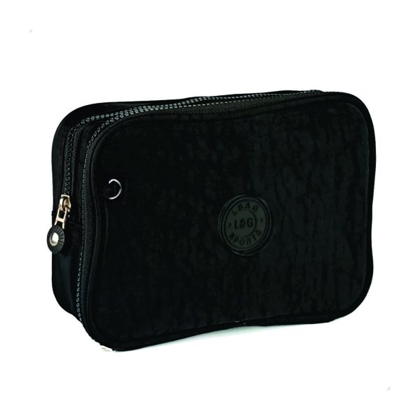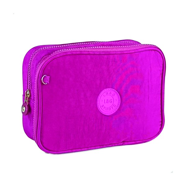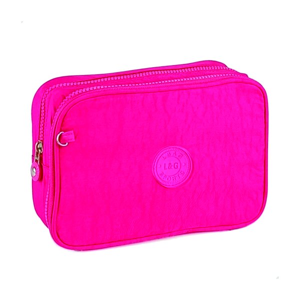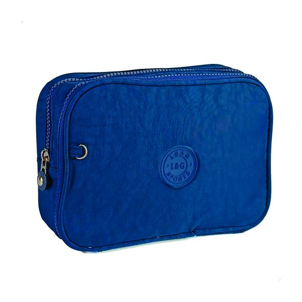 Possui formato compacto com medidas de 22,5x16x5,5 cm e fechamento prático.