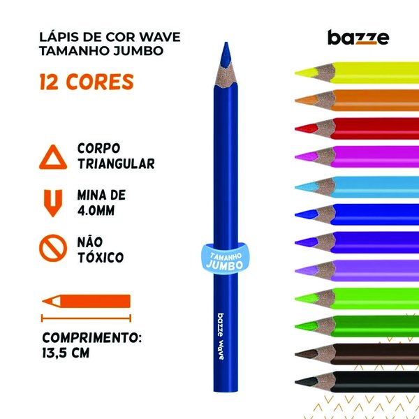 Se você busca qualidade, durabilidade e um desempenho excepcional em seus projetos de arte, o Lápis de Cor Jumbo 12 Cores Bazze Wave é a escolha perfeita. Explore sua imaginação e transforme suas ideias em realidade com esses lápis incríveis.